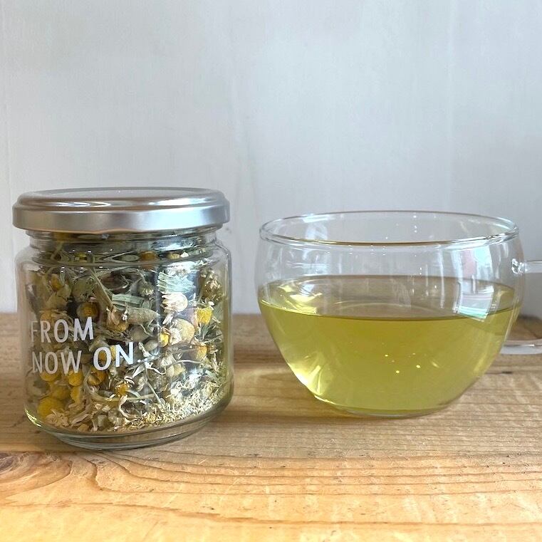カモミールの心地よい香りとステビアの自然な甘さが絶妙に調和しており、飲むたびに幸せな気分に包まれる檸檬色のハーブティー。