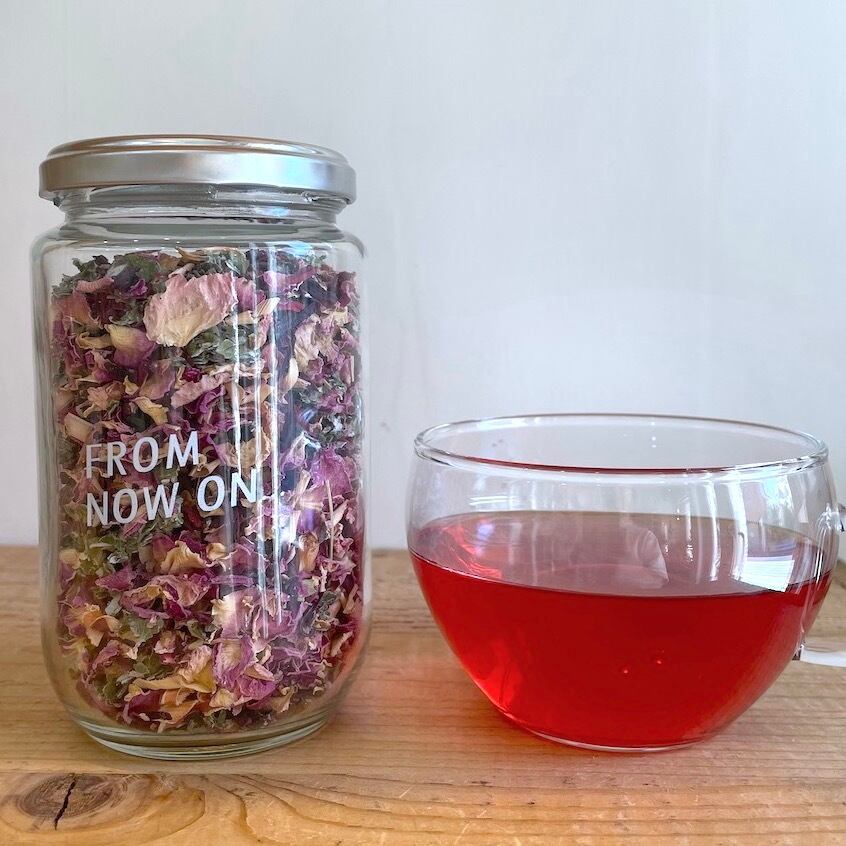 素敵な香りと美しい色合いが特徴のピンク&レッドローズ ハーブティーがあなたに一握りの幸せをお届けします。